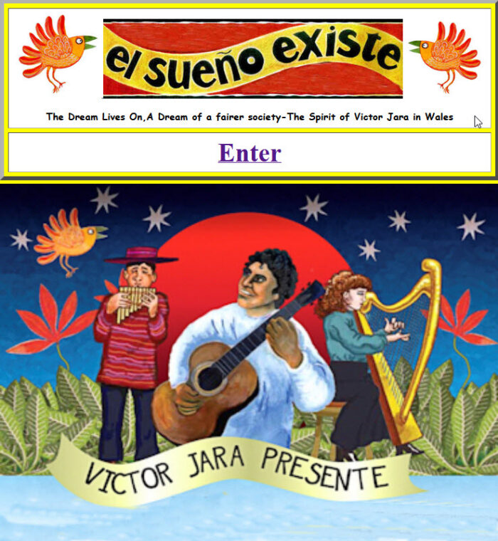 We continue to celebrate the artistry and legacy of Victor Jara through the annual El Sueno Existe Festival in Machynlleth, Wales, now in its 21st year. The festival brings together music, poetry, dance, drama radical politics, environmentalism and spirituality, providing a signpost represented in the phrase ‘Another World Is Possible’.