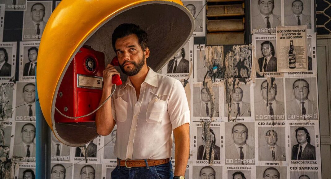 The opening scene sets the tone: a body lies decomposing on the ground near a gas station while Marcelo, a professor returning home to his family, is harassed by a corrupt police officer demanding a bribe. Played by Wagner Moura, Marcelo’s persecution begins not with a crime, but with his mere presence, signaling how authoritarian power turns ordinary life into grounds for surveillance and threat.