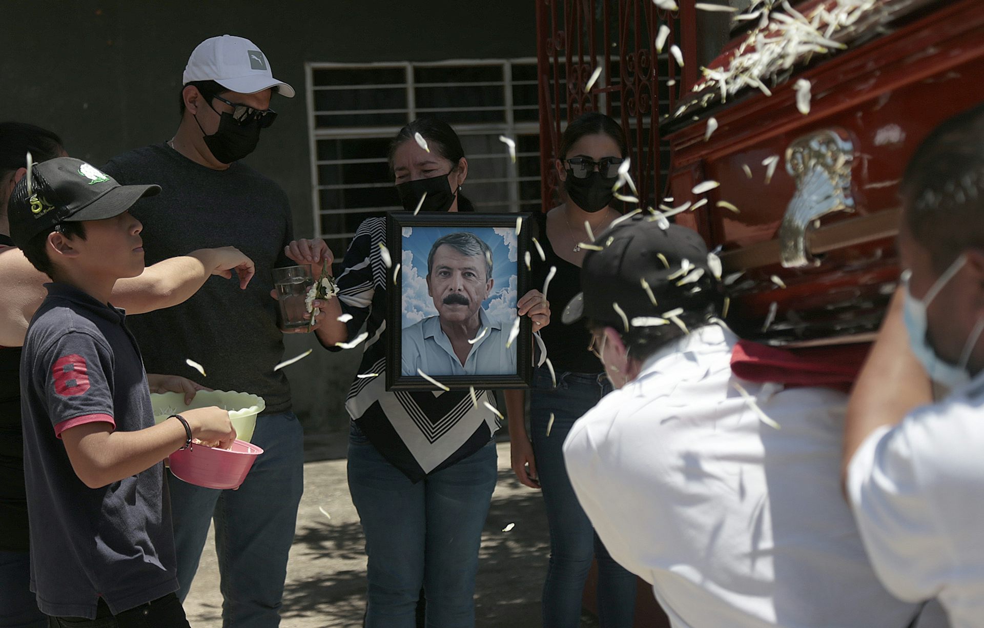 A mourner holds a photo of murdered journalist Fredid Roman during his funeral in the Mexican state of Guerrero, August 2022. David Guzman Gonzalez/EPA-EFE
