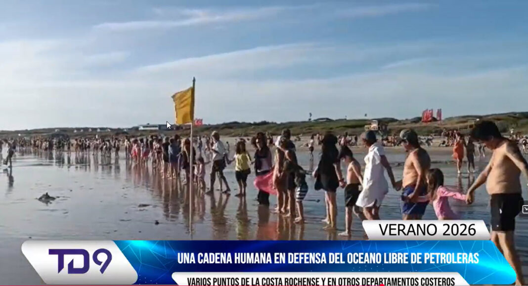 Human chain in defence of an ocean free from oil-wells, at Rocha, and various other points along the Uruguayan coast. Video: Chanel 9, 6 January 2026.